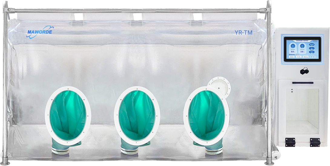 YR-TMZ Anaerobic chamber with oxygen and hydrogen monitoring system 399 l, interlock 27 l. Petri dishes capacity: max. 1450, interlock 66.