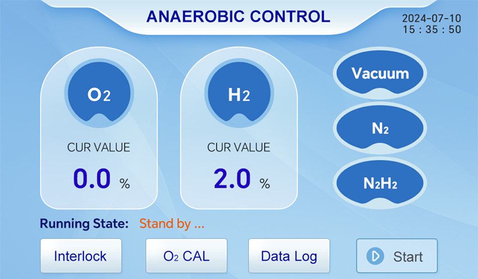 Dual Gas Sensing: Continuous O₂/H₂ detection ensures optimal anaerobiosis with low gas consumption after stabilization. Quick one-click O₂ sensor calibration.